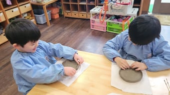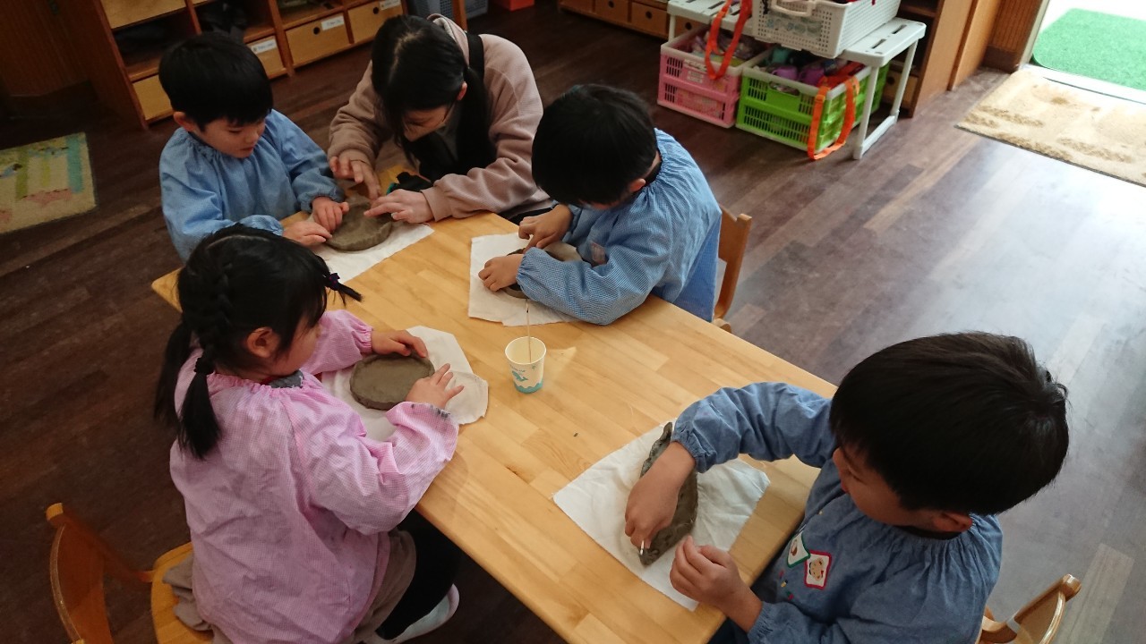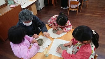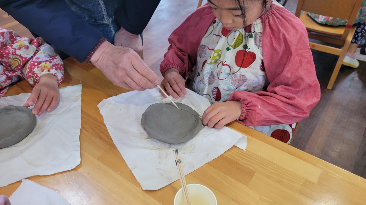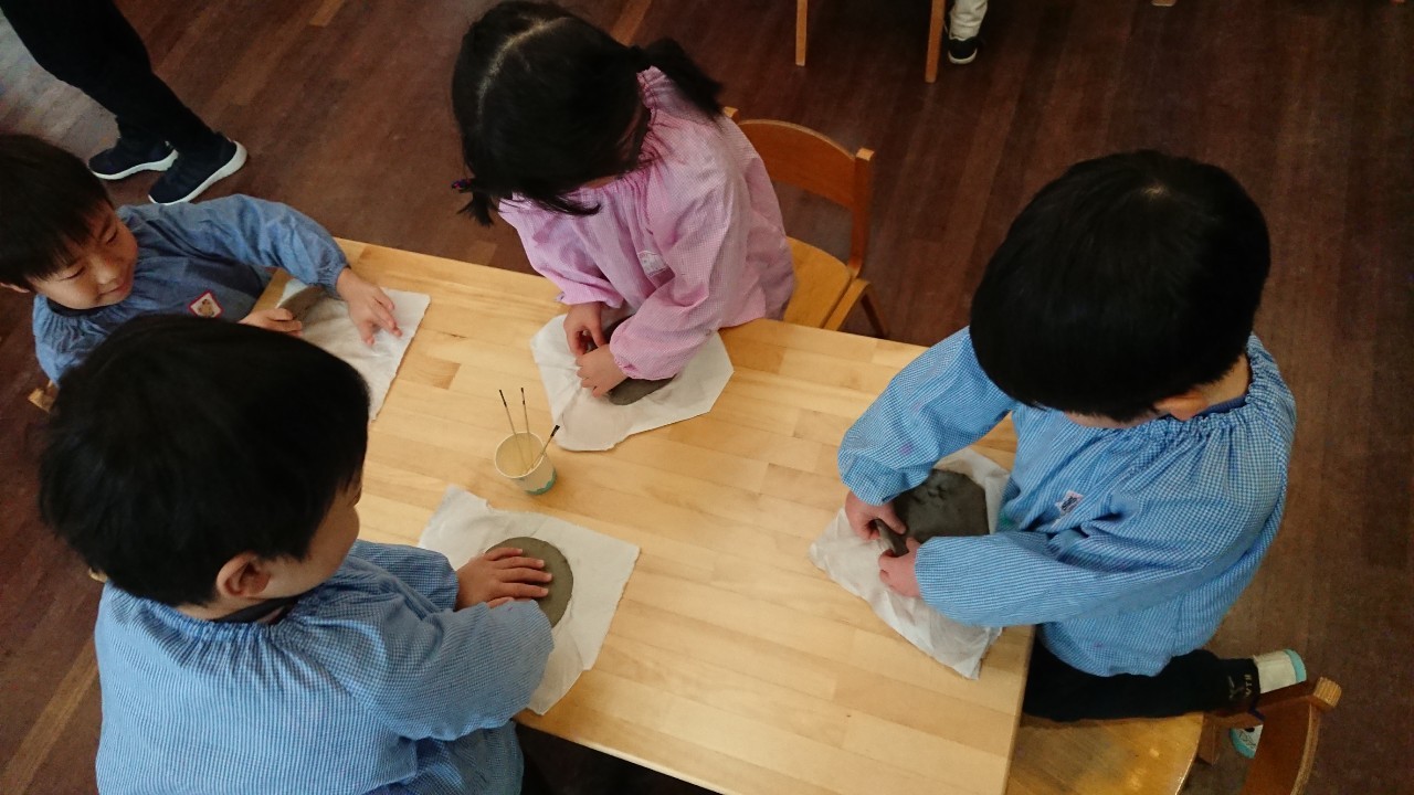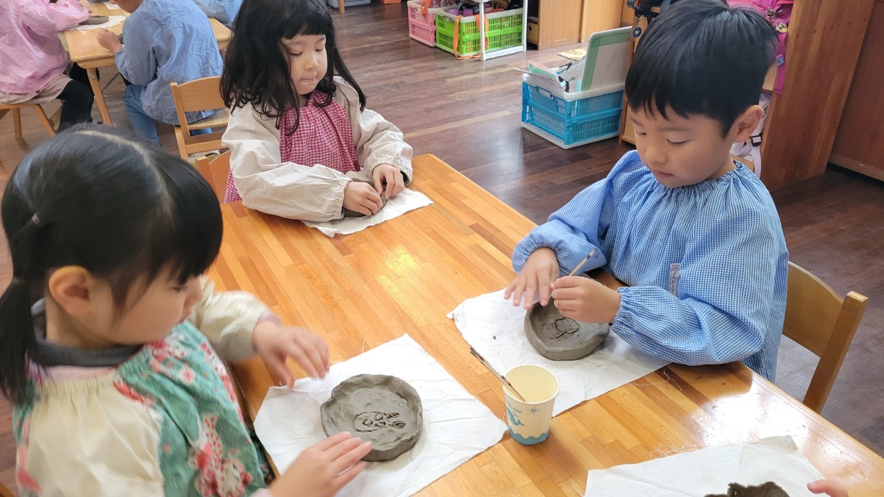 先日、池田市の五月山教会幼稚園さんにて、陶芸体験を開催させていただきました。