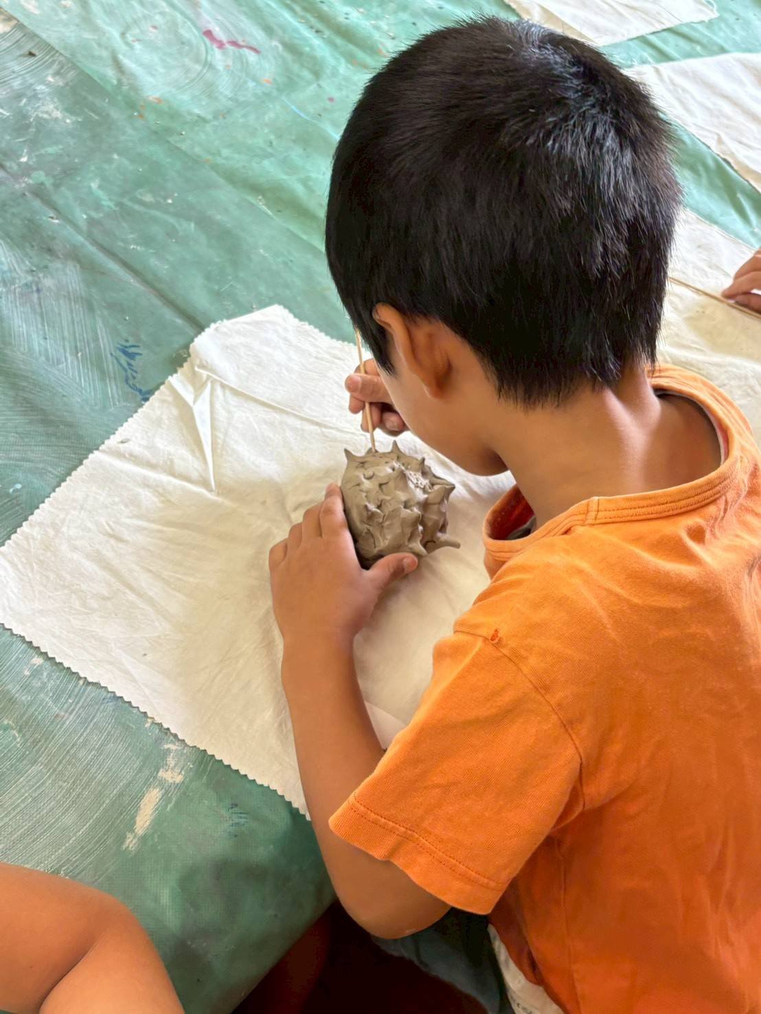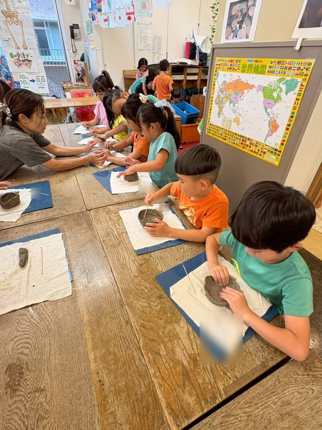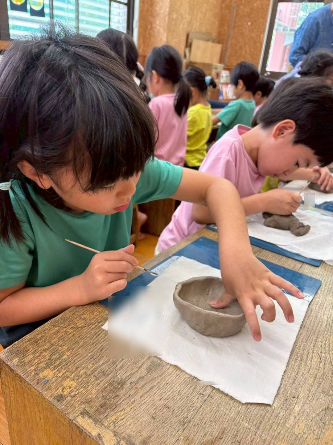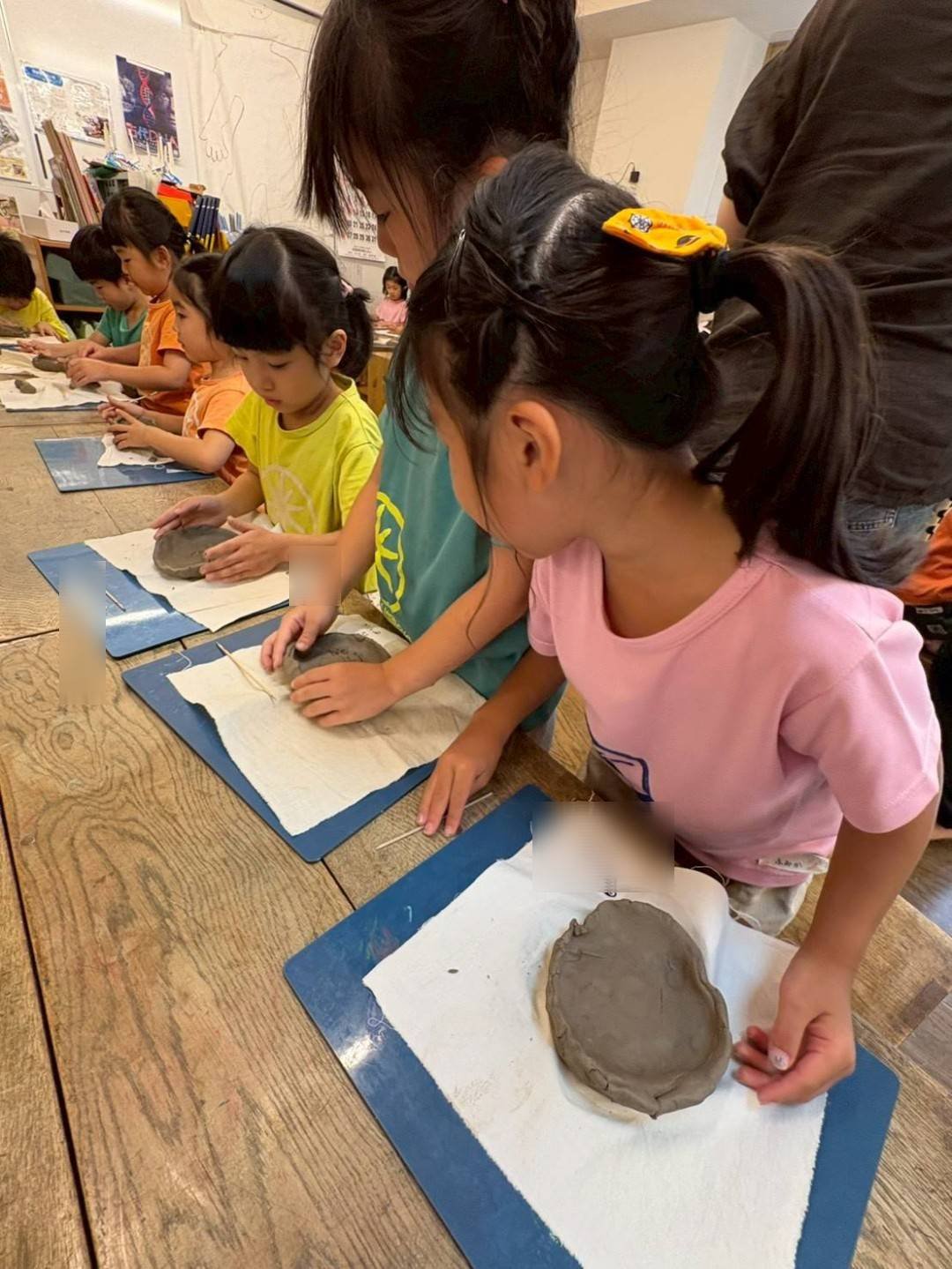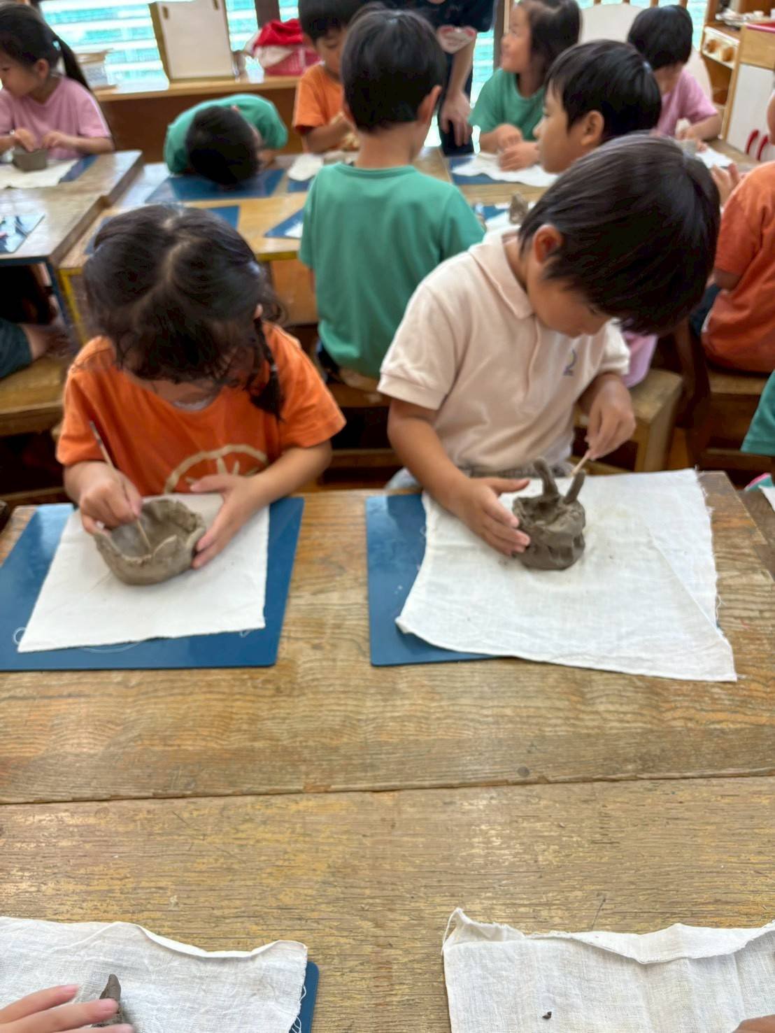 じっくり時間をかけて、こだわりをもってつくりたい子も多く、何度もつくりかえ、陶芸講師の和さんに土を捏ね直してもらったり、新しい土に変えてもらう子もいました。