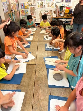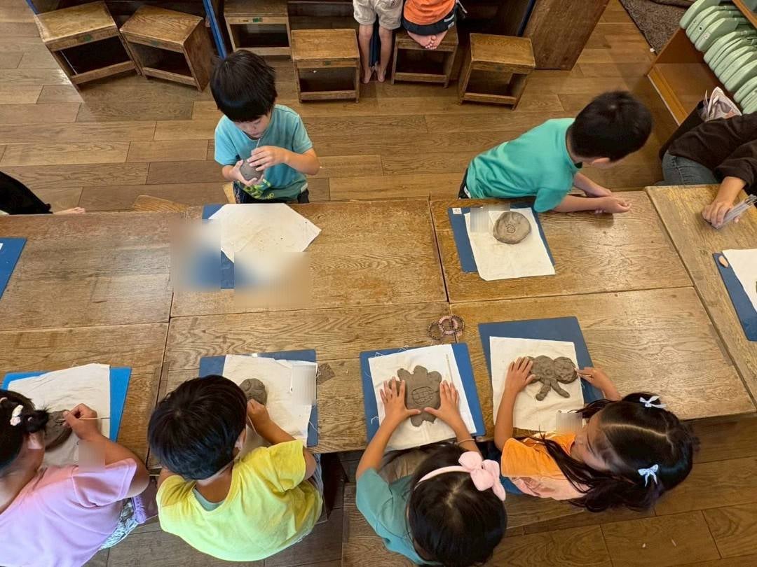 先日、豊中市のあけぼの幼稚園さん 年長さん3クラスにて、陶芸体験を開催させていただきました。
