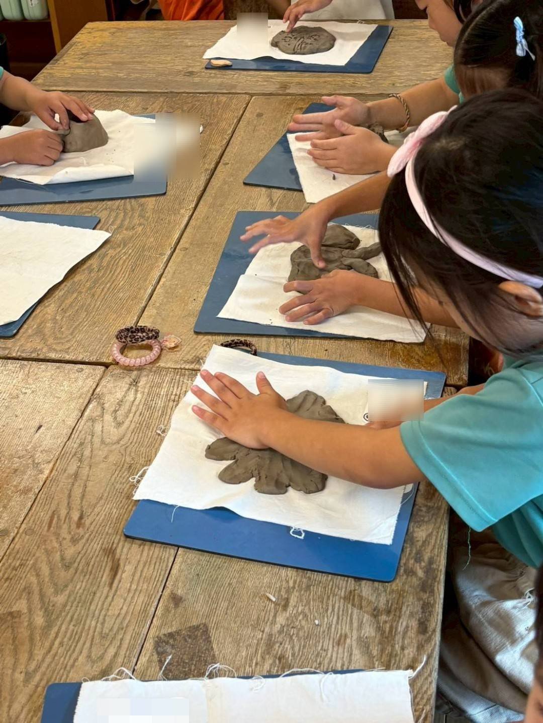 陶芸の土が配られたら早速手を動かし始める子どもたち。