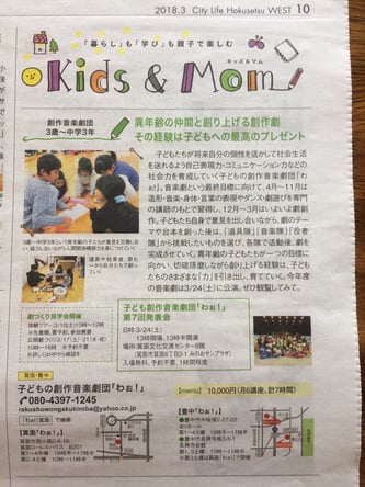 ふた月連続でシティライフに子どもの創作音楽劇団「わぉ!」の記事を掲載して頂きました-!!