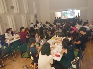 発表後には、お楽しみ!!お菓子パーティー!!保護者のみなさまにもご参加いただき、子どもたちはとても嬉しそうでした。本番までの練習風景のスライドも流れ、和やかなひと時となりました。