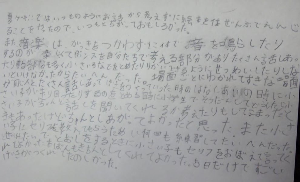 ☆5日間は長かったし、小さい子は、5日間連続はしんどいと思った。終わった後の達成感があった。