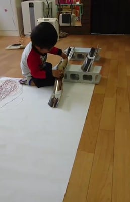電車やバス、車、そして回るものが大好きなAくん。この一カ月はそれがテーマとなりいろんなものを創りました。時には部屋にあるヒーターを分解し、回るところがどんな仕組みになっているのか、一緒に考えたこともありました。