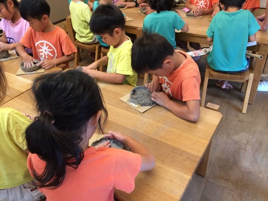 教室内には陶芸の写真が貼ってあったり、粘土で作った作品を教えてくれるお友だちもいました。