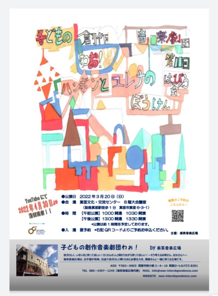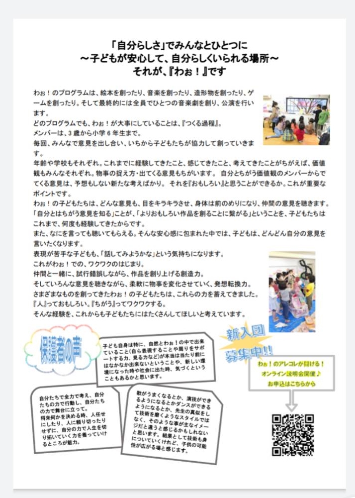 子どもの創作音楽劇団わぉ!第11回発表会 チラシフライヤー完成しました!