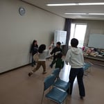 輪の中の誰か1人に向かい、フルーツの名前を言い合ってましたが、声出しだけでなく、お互いの理解を深めるためのトレーニングにもなっていたのかも。