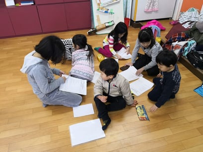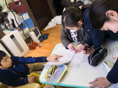 みっちーの「宿題やってきたー?」の問いに、「やってきたよー♪」と自信満々に答える子どもたち。