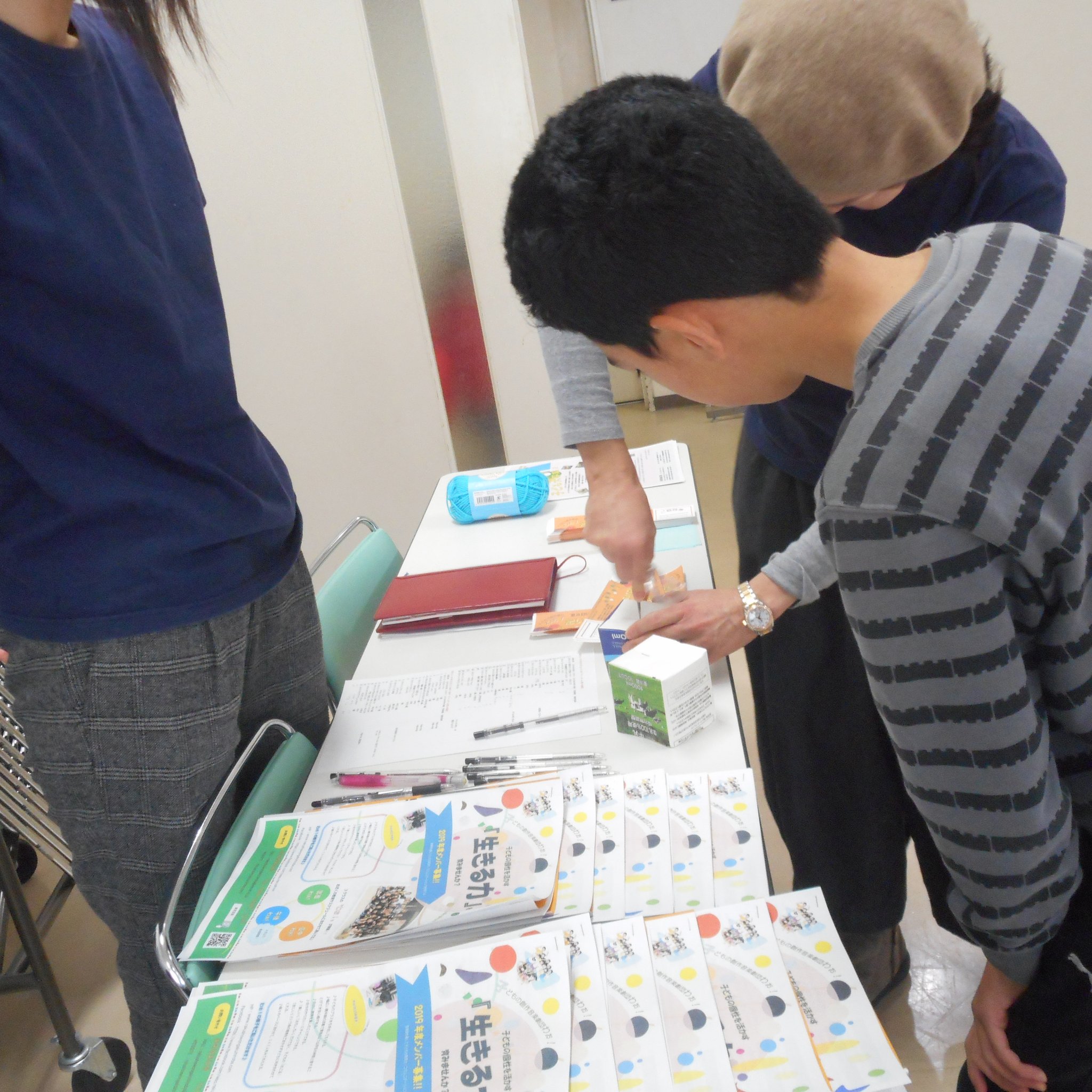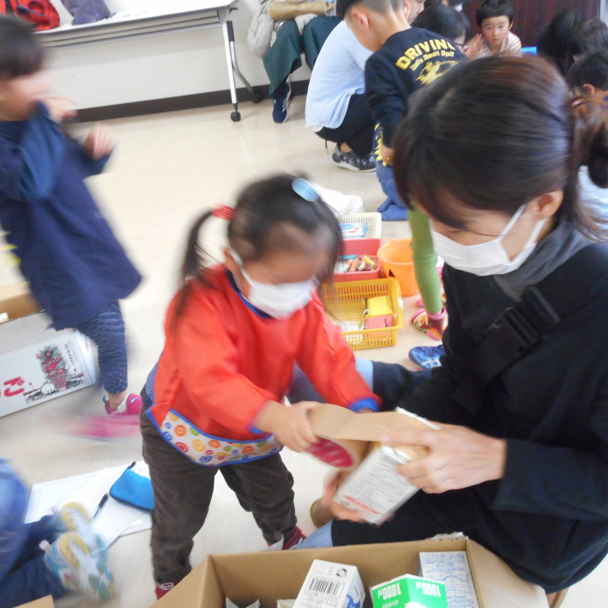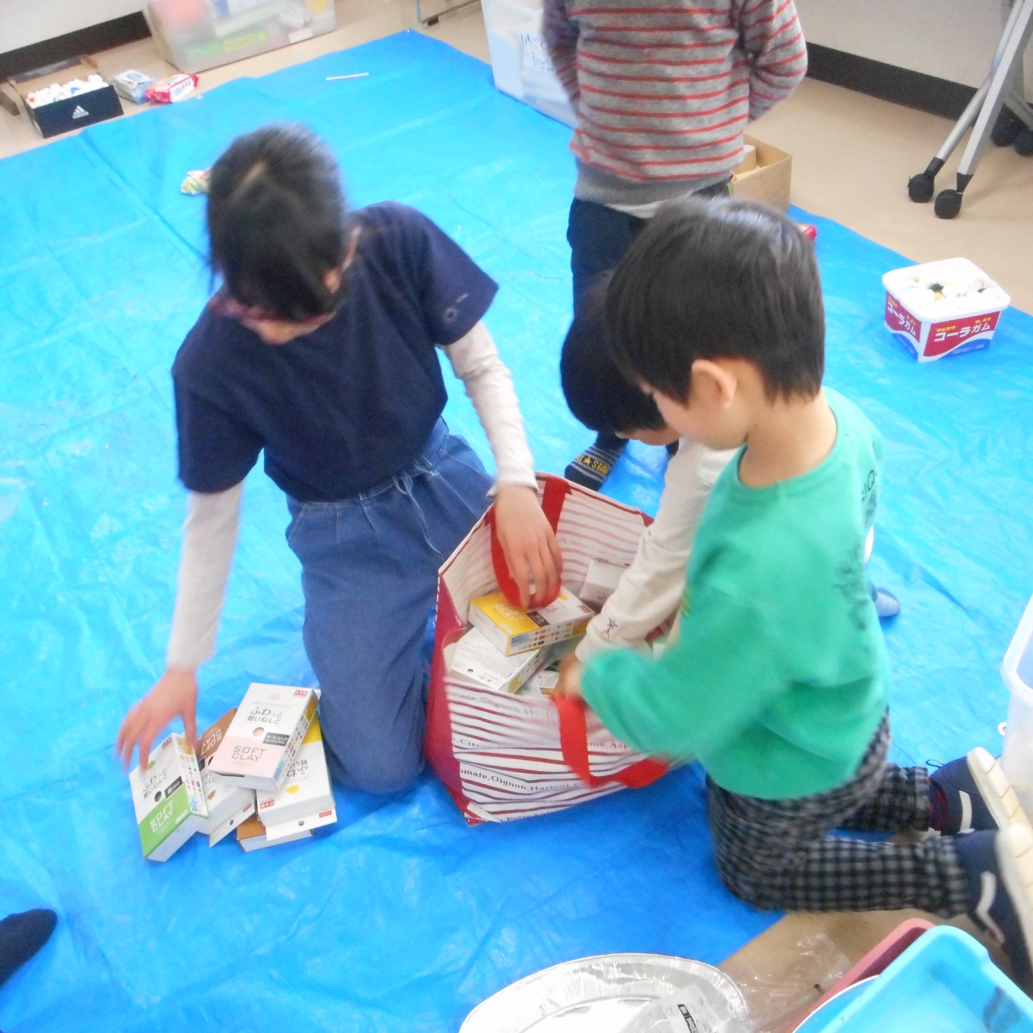 そうこうしているうちに、続々とお友だちが!早めに来てくれたお友だちは一緒に準備に参加。