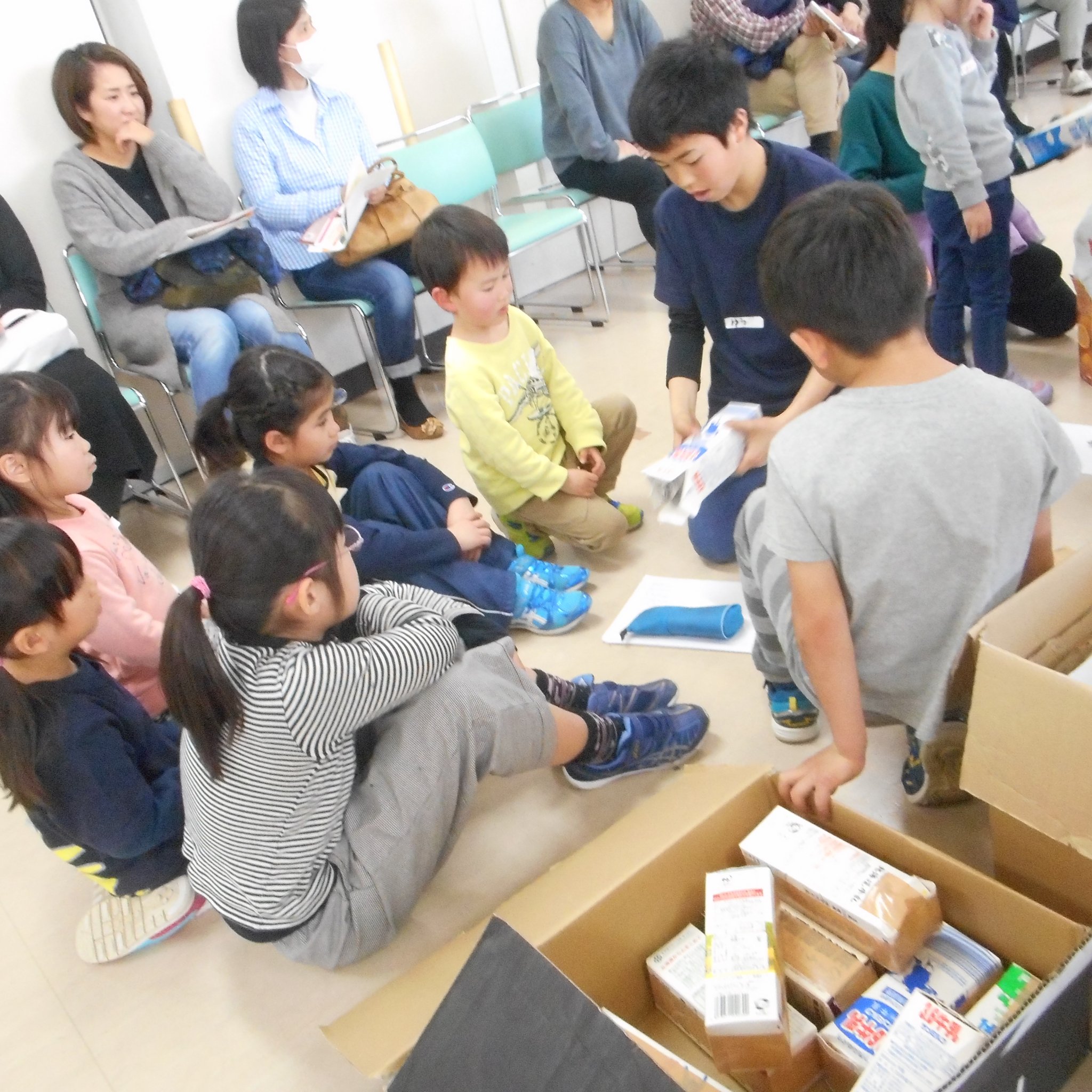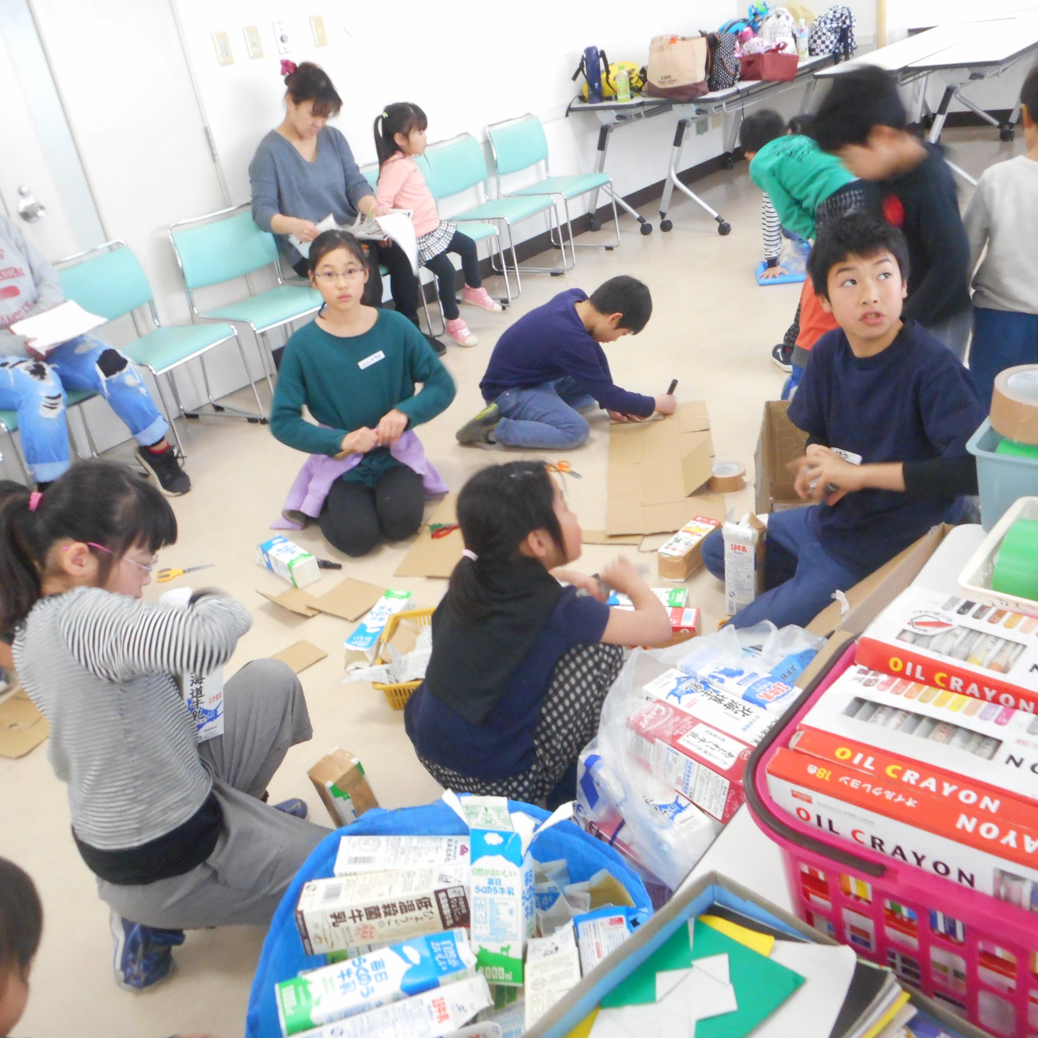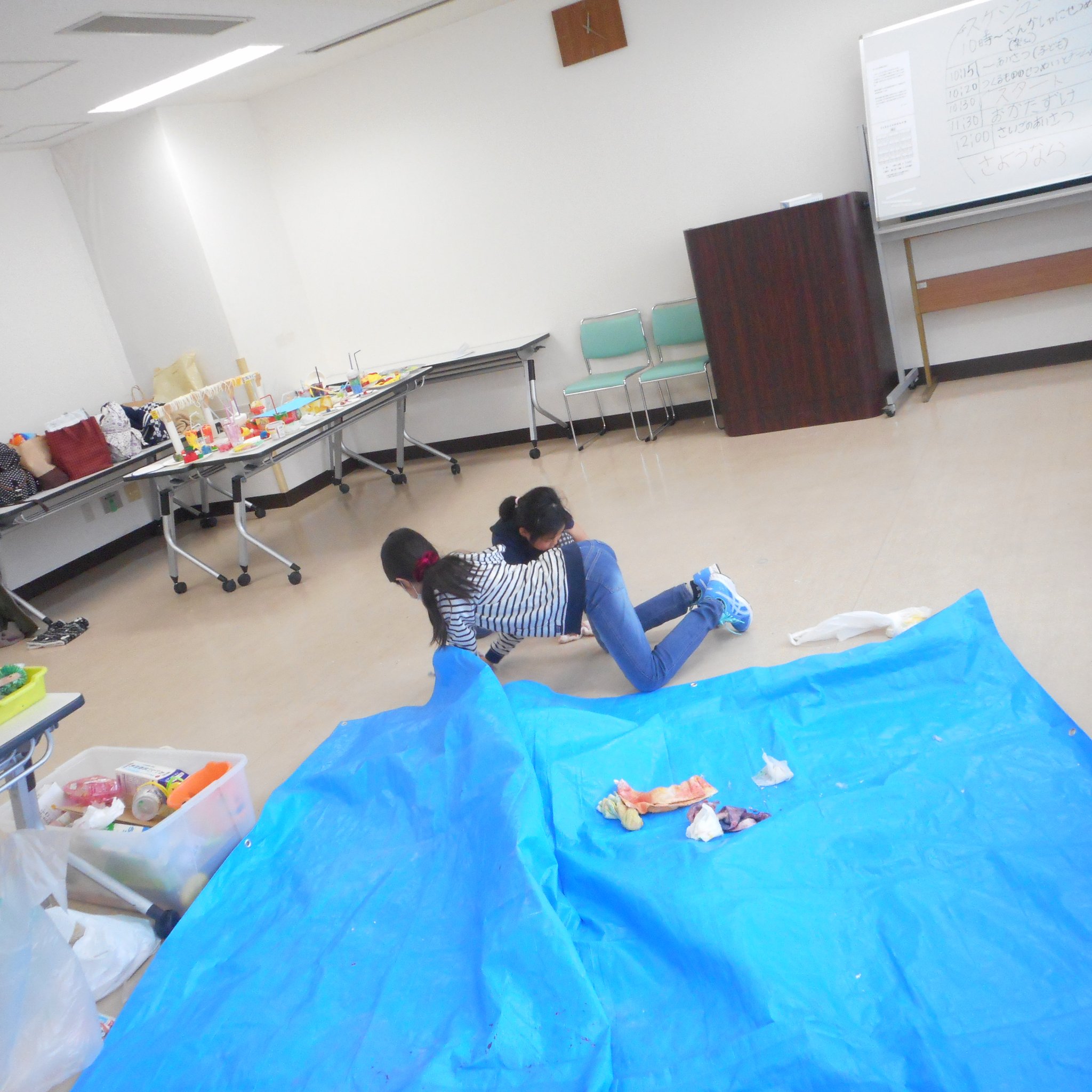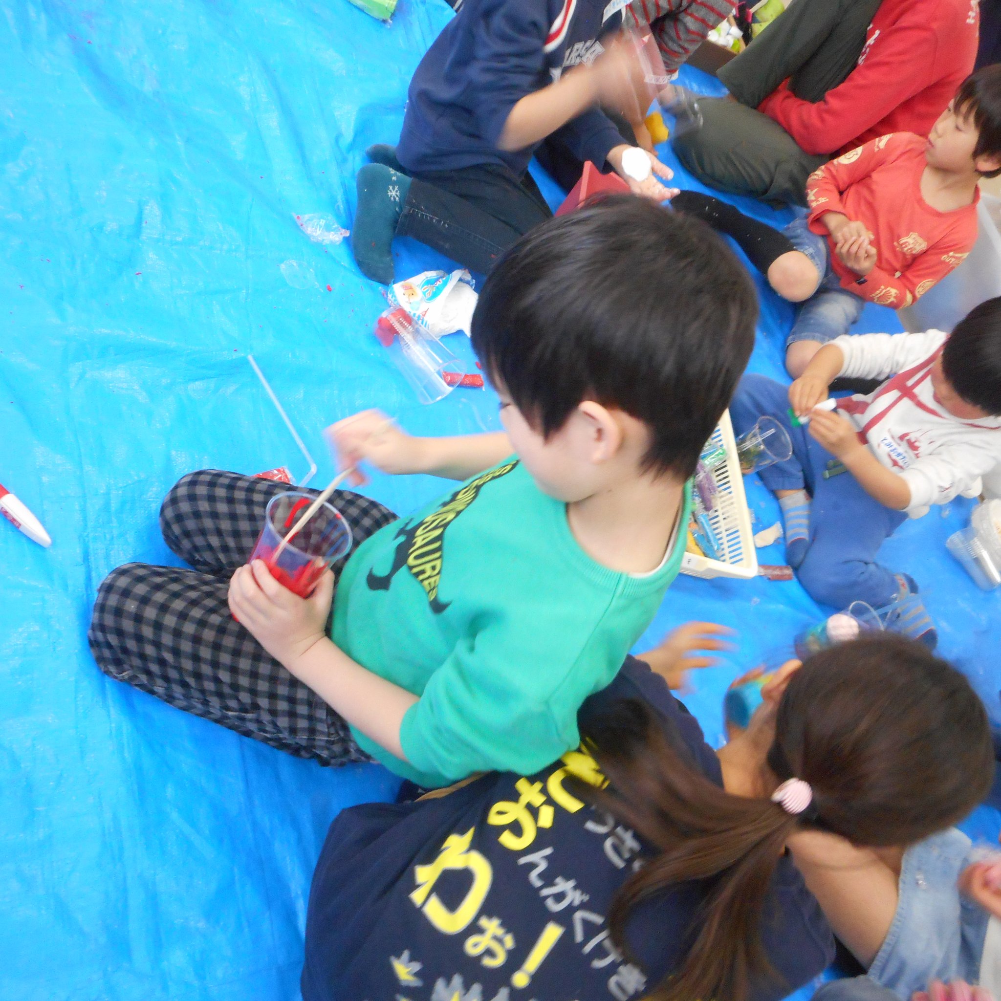 そうこうしているうちに、続々とお友だちが!早めに来てくれたお友だちは一緒に準備に参加。