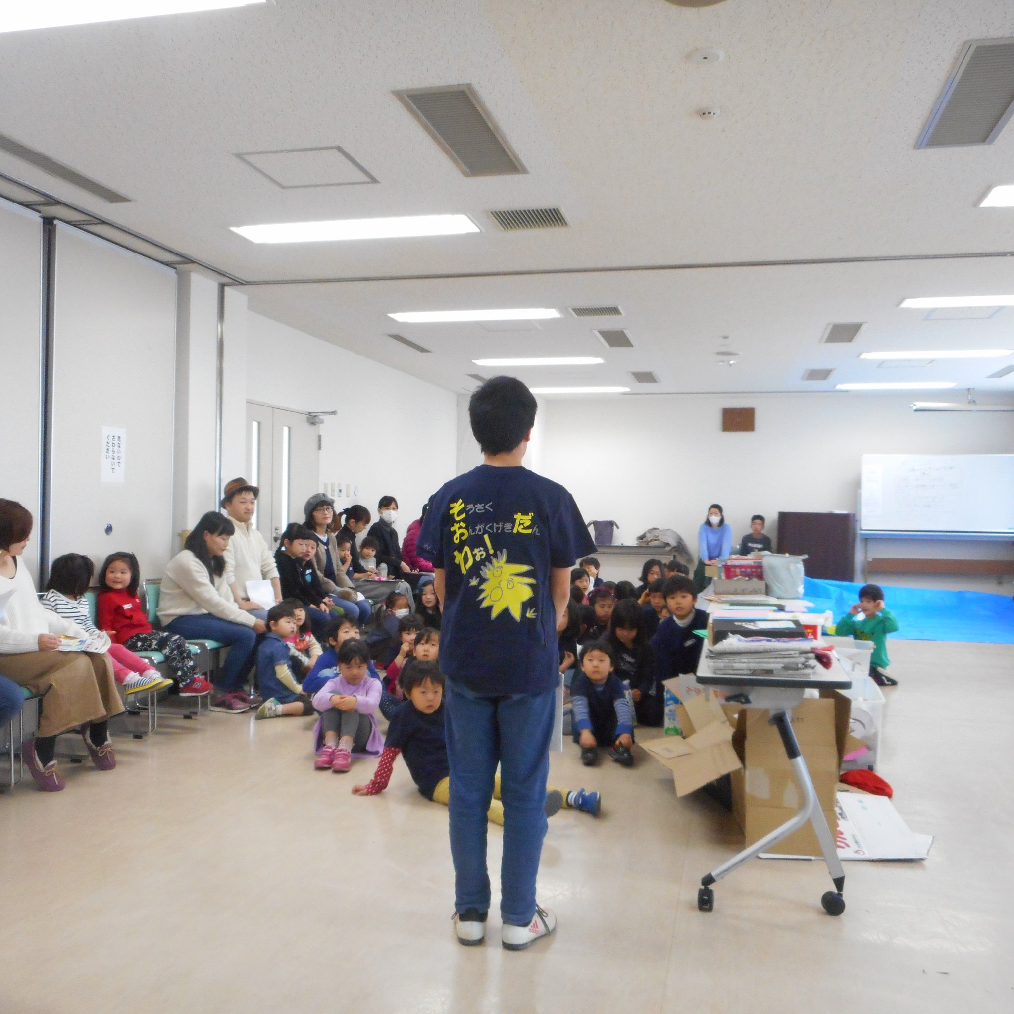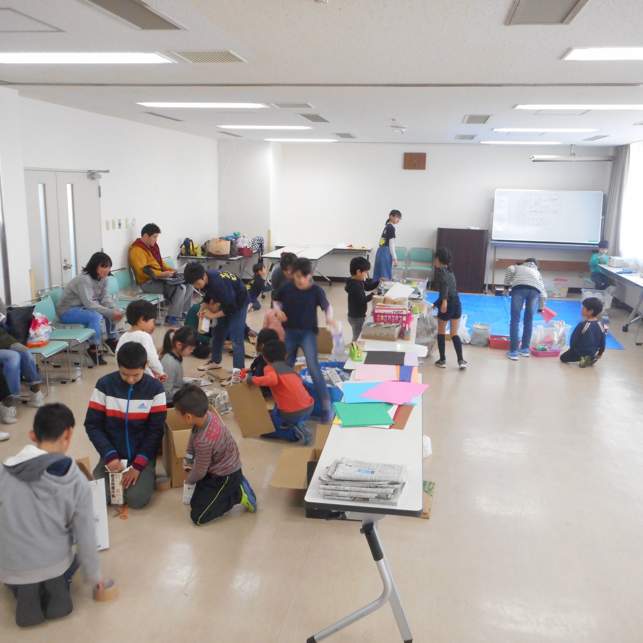 わぉ!メンバーはもちろん!道具隊が一緒につくります。事前に高学年を中心にグループ分けから会場設置を考えてきた模様。