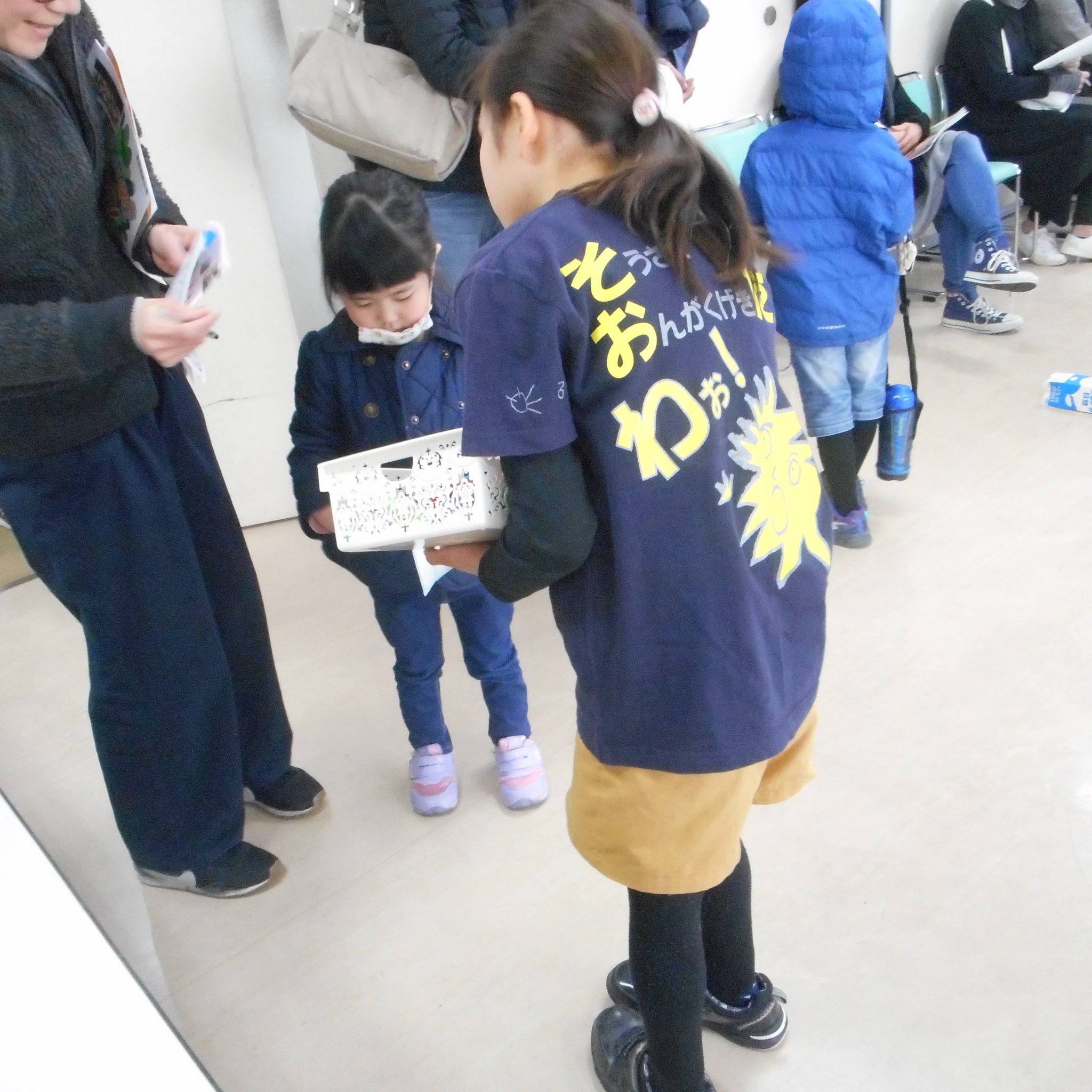 受付は大人スタッフで対応させていただいたのですが、そこから名札シールに名前をかいてもらったり、荷物を置く場所を案内したり・・・は、わぉ!メンバーの出番。