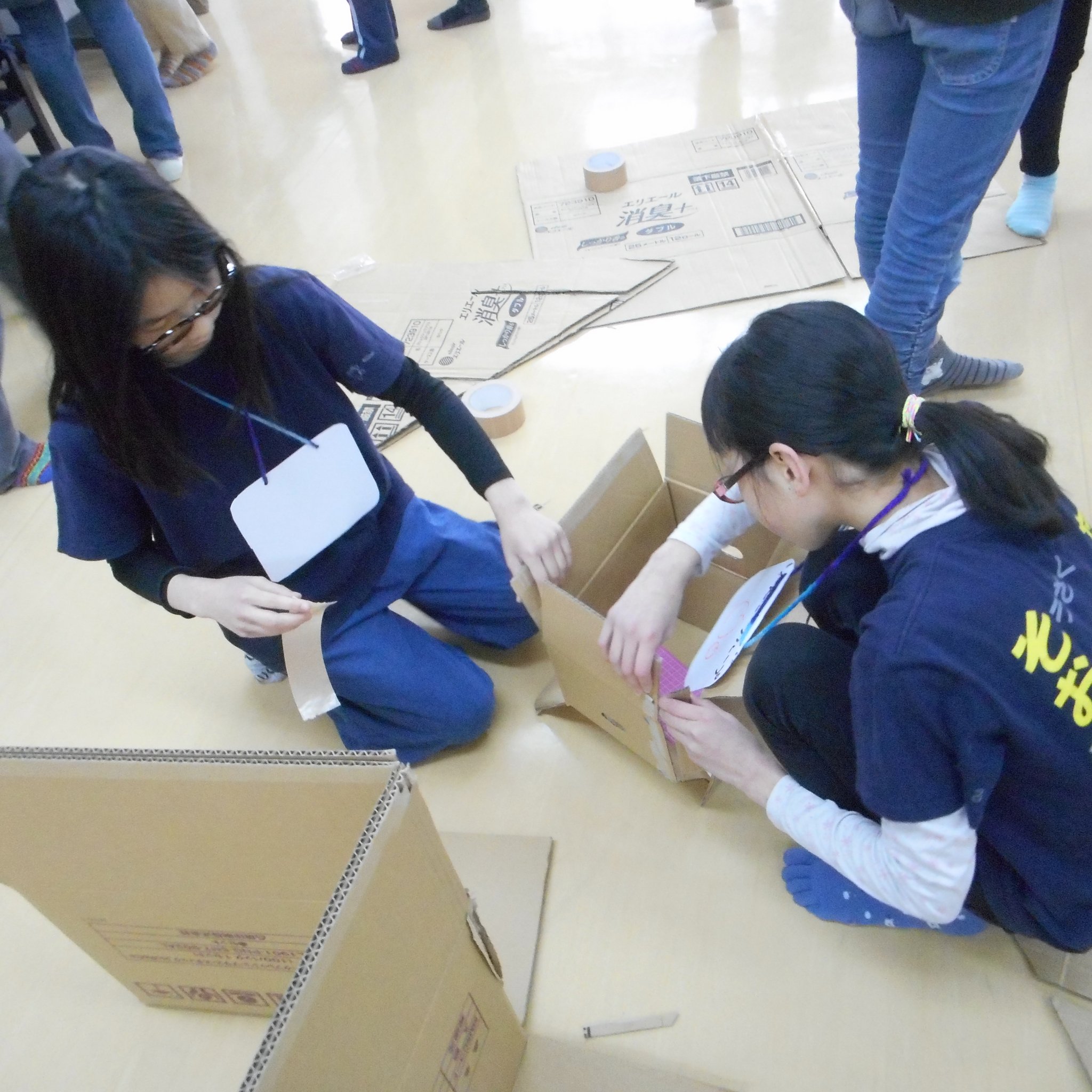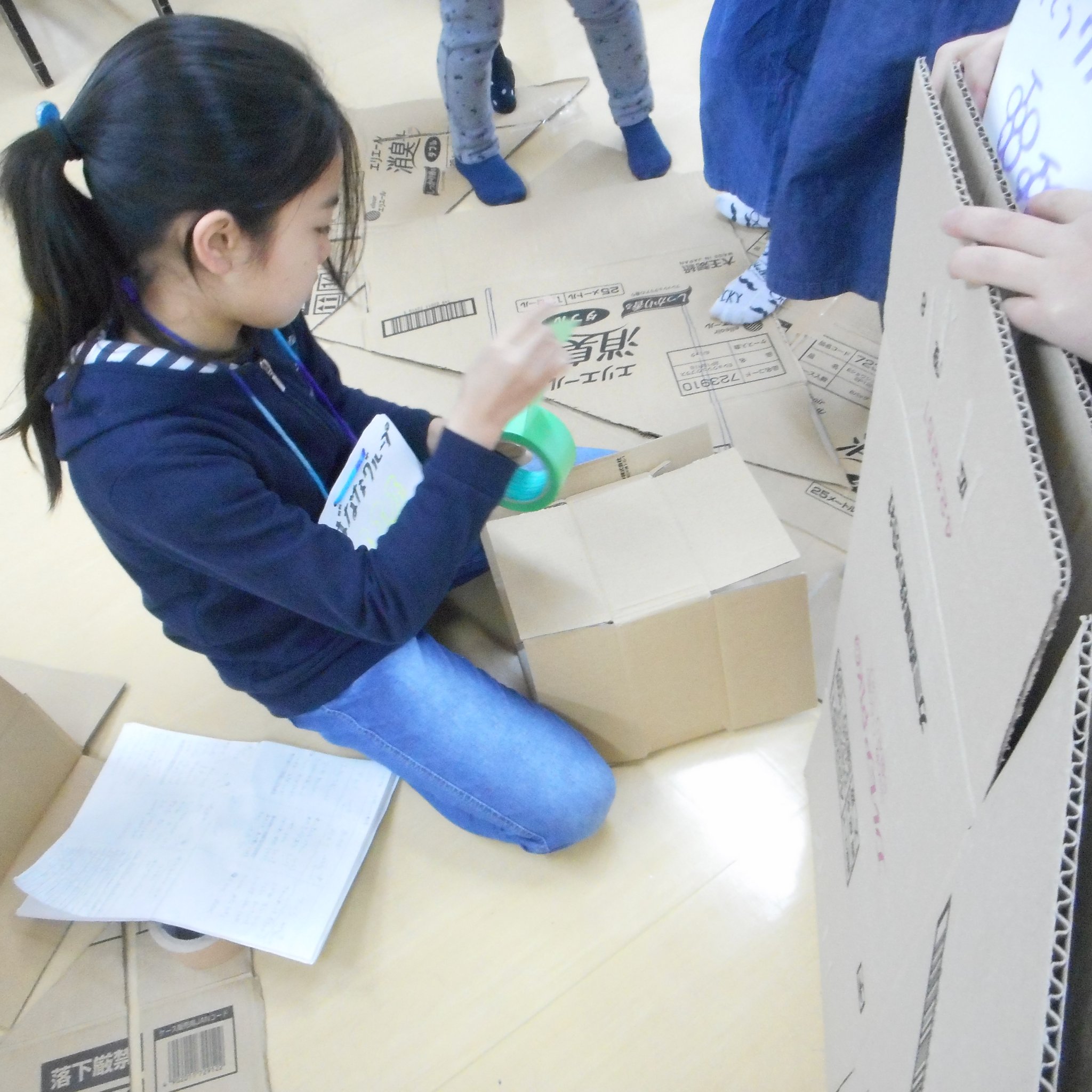先日の牛乳パックパーツと今日の段ボールパーツを組み合わせてできました!