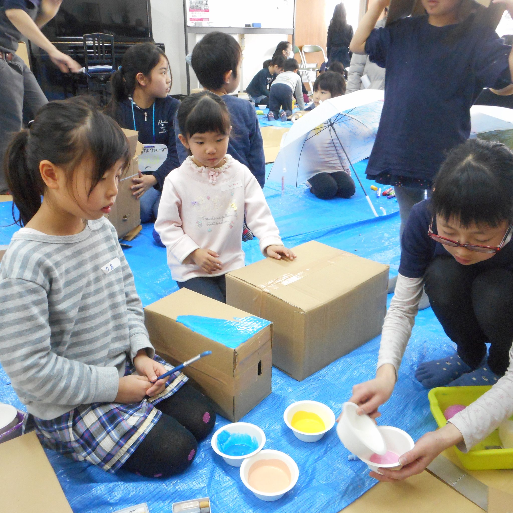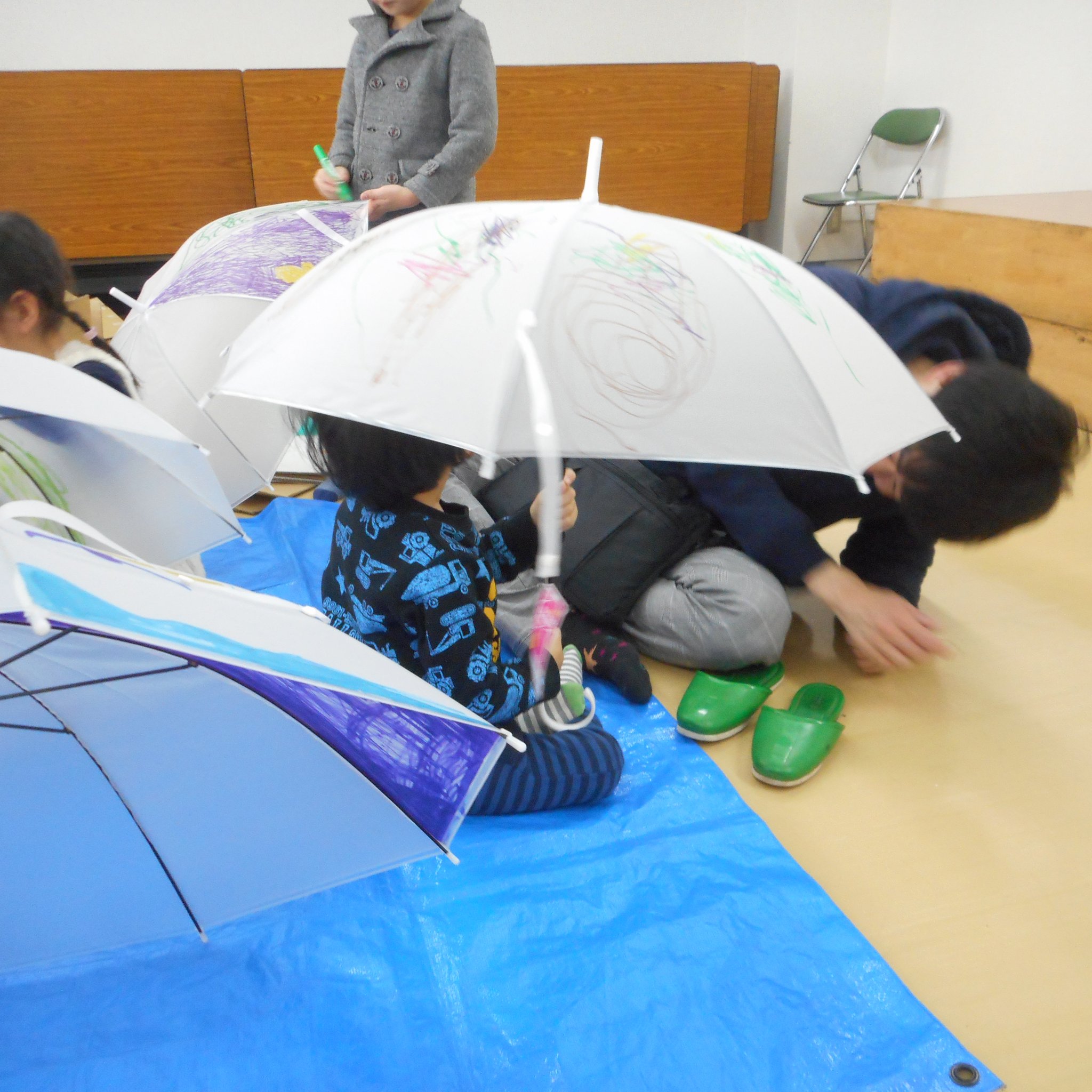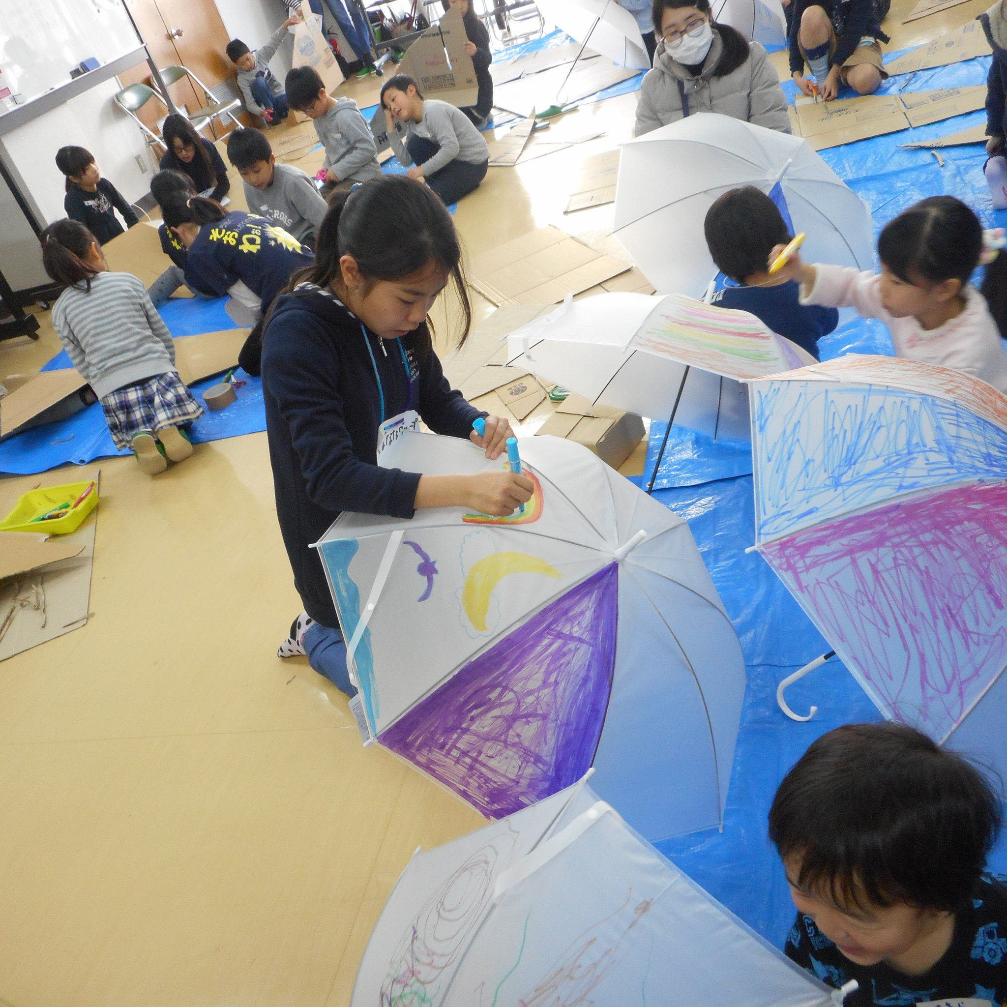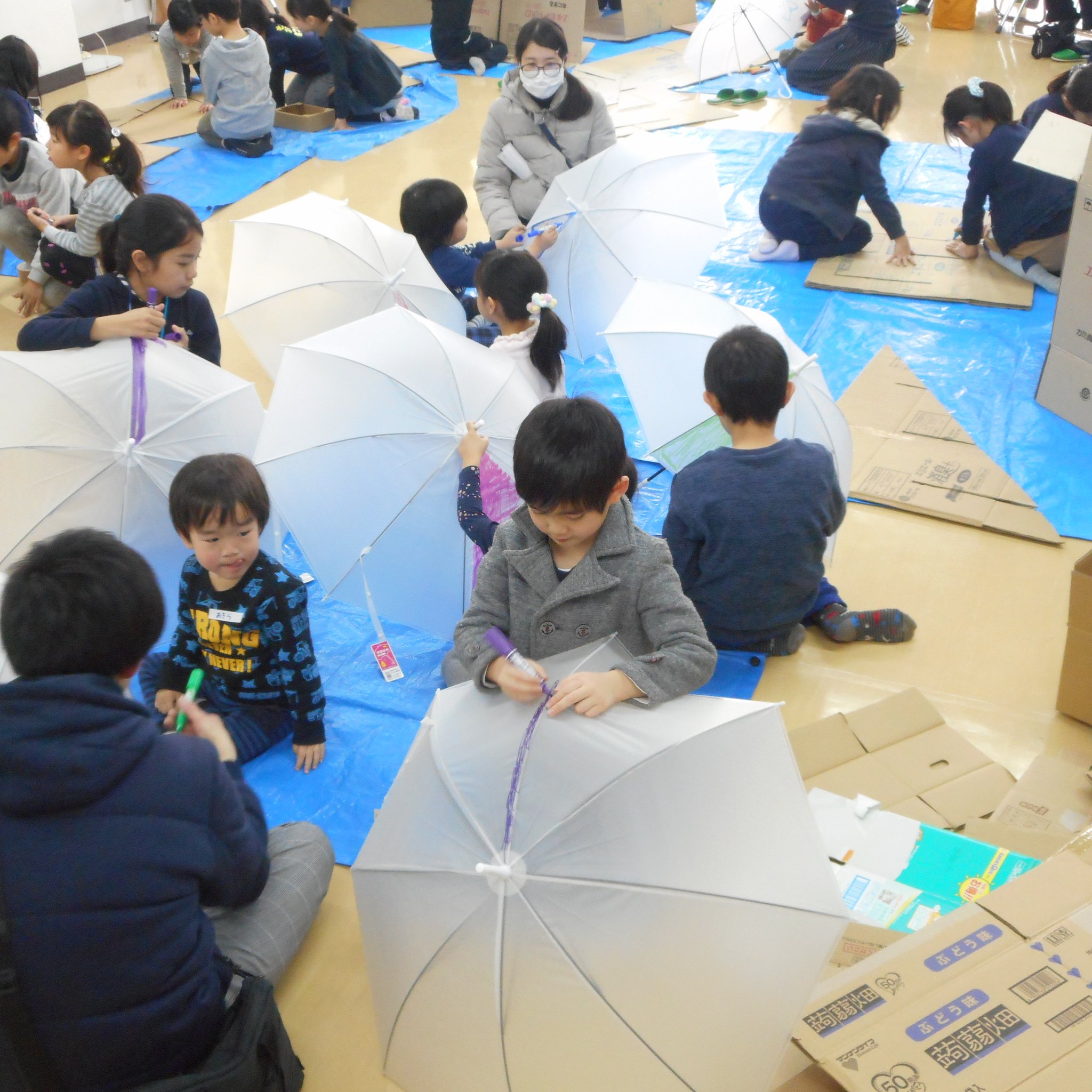 そして、普段、傘に絵を描くなんてしないようなことができる!というのも子どもたちにとっては新鮮だったようで、思い思い傘のキャンバスに描いてくれました。